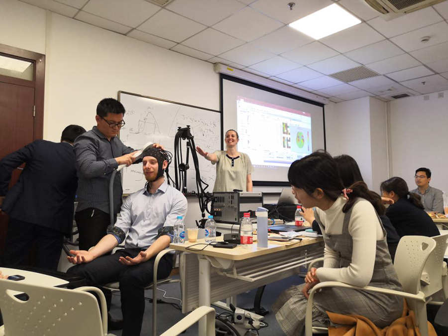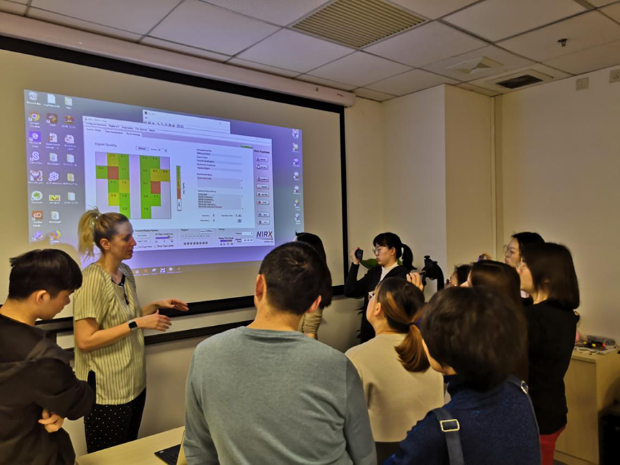 NIRX專業(yè)科協(xié)團隊從蒙太奇設(shè)計和電極帽準備,實驗設(shè)計與同步/觸發(fā),受試者測量等所有科研遇到的環(huán)節(jié)一步一步細心講解與演示,以及瀚翔專業(yè)工程師與專業(yè)翻譯人員協(xié)助下,帶領(lǐng)學員分組實操,研究與操作知識樣樣Get。