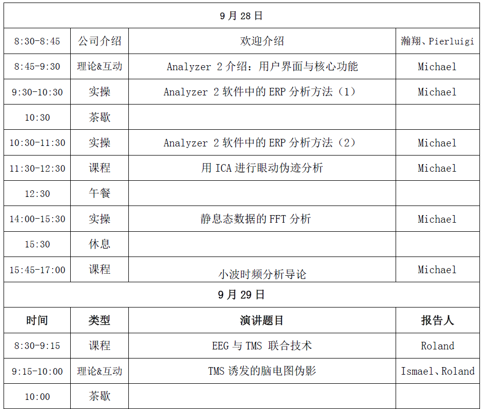 本次EEG/ERPs與TMS高級學術研討會之余,我們將邀請德國Brain Products公司科學團隊對相關實驗操作技術進行為期兩天的深入培訓,歡迎認知神經科學、臨床醫學等領域的科研人員和研究生參與學習,推動EEG/ERPs與TMS領域的研究探索!