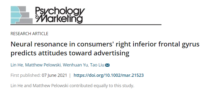 浙江大學劉濤課題組在Psychology & Marketing雜志發表論文揭示消費者對廣告反應的機制研究