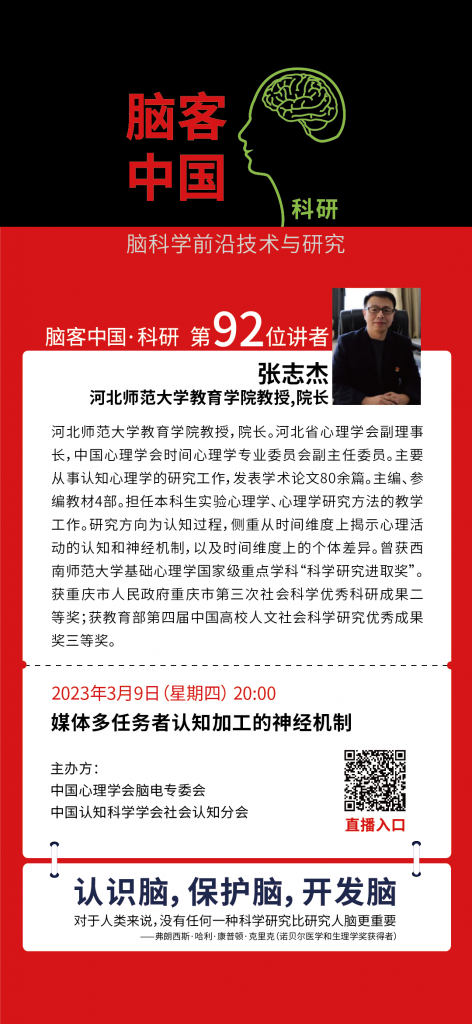 【直播預告】 本周四晚20點 張志杰:媒體多任務者認知加工的神經機制