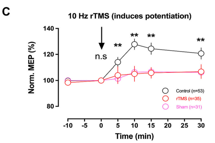 研究結果首次表明,10Hz rTMS可以有效治療受損皮質可塑性和MDD患者的認知障礙,可塑性和認知功能的變化密切相關,這可能表明運動皮質可塑性在認知障礙中發揮至關重要的作用,皮質可塑性可以作為一個潛在的預測MDD患者認知改善的生物標志物。