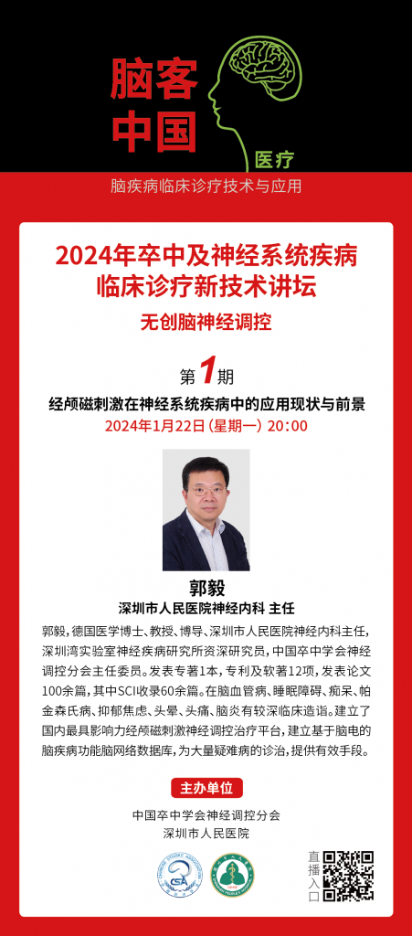 【直播預告】2024年1月22日晚20點 郭毅:經(jīng)顱磁刺激在神經(jīng)系統(tǒng)疾病中的應用現(xiàn)狀與前景