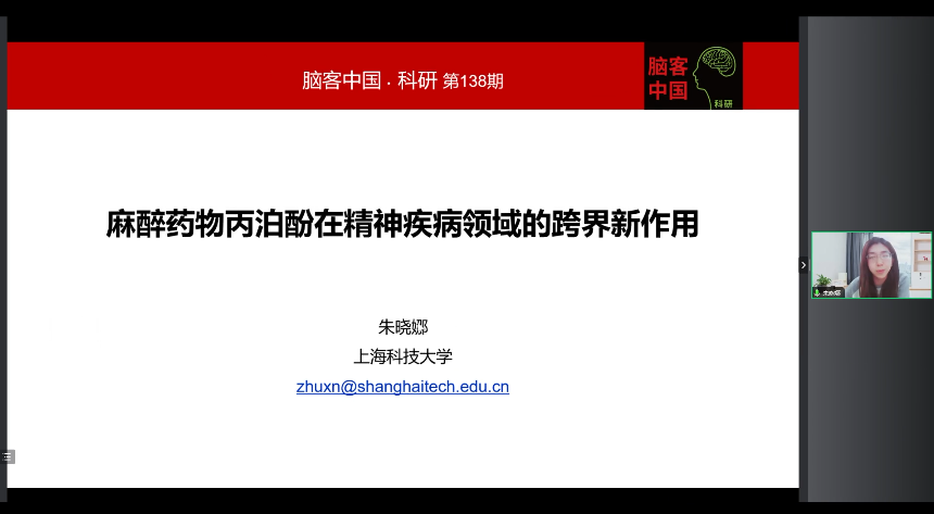 2024年3月27日晚20點,上??萍即髮W生命科學與技術學院朱曉娜副研究員作為腦客中國科研第138位講者為大家帶來主題為《麻醉藥物丙泊酚在精神疾病領域的跨界新作用》的報告。以下內容節選自直播視頻: