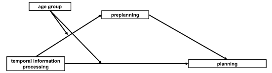 據(jù)此,本研究假設(shè)預(yù)先計(jì)劃(用ITT測量)在時(shí)間信息處理(TIP)和計(jì)劃中起中介作用,且年齡在時(shí)間信息處理和計(jì)劃、預(yù)先計(jì)劃之間起調(diào)節(jié)作用(圖1)。