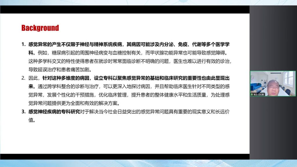 2024年10月9日晚20點(diǎn),首都醫(yī)科大學(xué)宣武醫(yī)院博士生導(dǎo)師王紅星教授作為腦客中國(guó)科研第162位講者為大家?guī)?lái)主題為《感覺(jué)神經(jīng)病學(xué)—— 一個(gè)新的神經(jīng)病學(xué)亞專(zhuān)業(yè)》的報(bào)告。以下內(nèi)容節(jié)選自直播視頻: