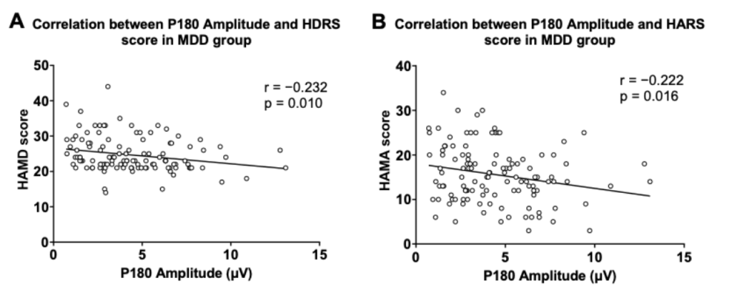 P180作為抑郁及焦慮癥狀的標記物,P30作為認知損傷的標記物,可能反映了抑郁癥患者背外側前額葉皮質的興奮-抑制不平衡。