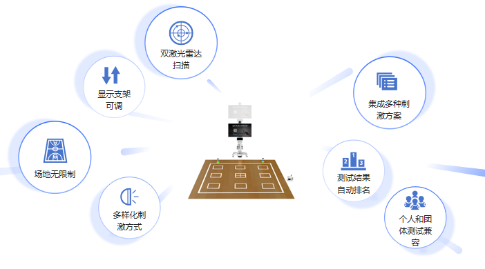 該系統(tǒng)可通過多樣化的視覺、聽覺、空間感知、壓力,并可以附加電、磁等刺激,訓(xùn)練和測試運(yùn)動員的原地踏步頻率、記憶速度、靈敏性、跳躍能力、轉(zhuǎn)體反應(yīng)、大腦速度意識、跑動時(shí)間、距離等運(yùn)動素質(zhì)能力,是綜合大腦能力發(fā)展速度水平的創(chuàng)新訓(xùn)練和測試系統(tǒng)。