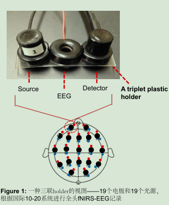 該論文使用全腦近紅外測量系統(19光源和19探測器)布置在國際10-20系統中(FP1, FP2, F4, C4, P4,O2, F8, T4, T6, Fz, Cz,Pz, F3, C3, P3, O1, F7, T3, and T5),是一種全新的近紅外功能成像測量研究,以往近紅外結合腦電測量往往只測量一個區域或者幾個電極點,沒有深入研究出腦電和近紅外結合的深入范式。