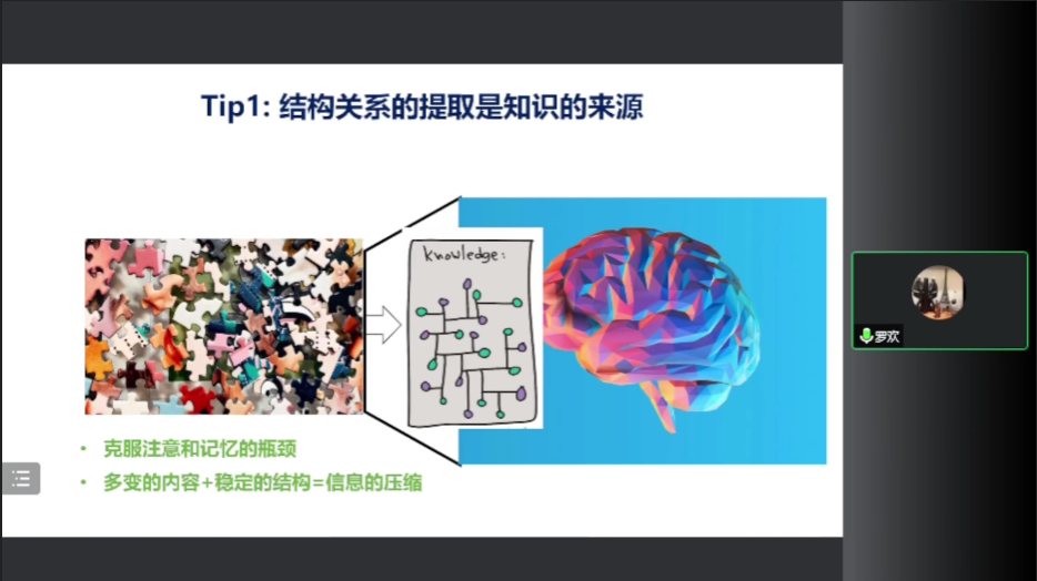 首先我們知道,注意也好,工作記憶也好,都是有瓶頸的,不可能注意到很多東西,工作記憶也只是5±2。當你面對外面星辰大海般的碎片化信息時,其實比較重要的方式是把這些碎片化信息背后的結構給提取出來,這樣才能夠獲得真正的知識,或者說結構關系的提取才是知識的來源。