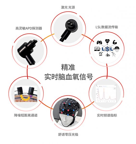 內置短通道檢測,有效分離淺層信號,提高腦皮層數據真實性;主動探測器保證數據質量。
